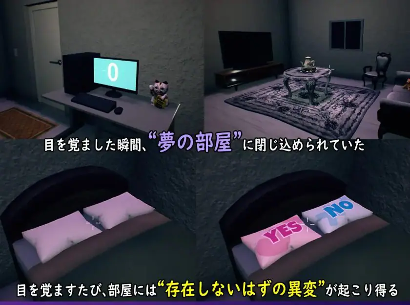 主人公被困于无限循环的“梦之房间”,必须在八个夜晚中找出异常、判断进退: